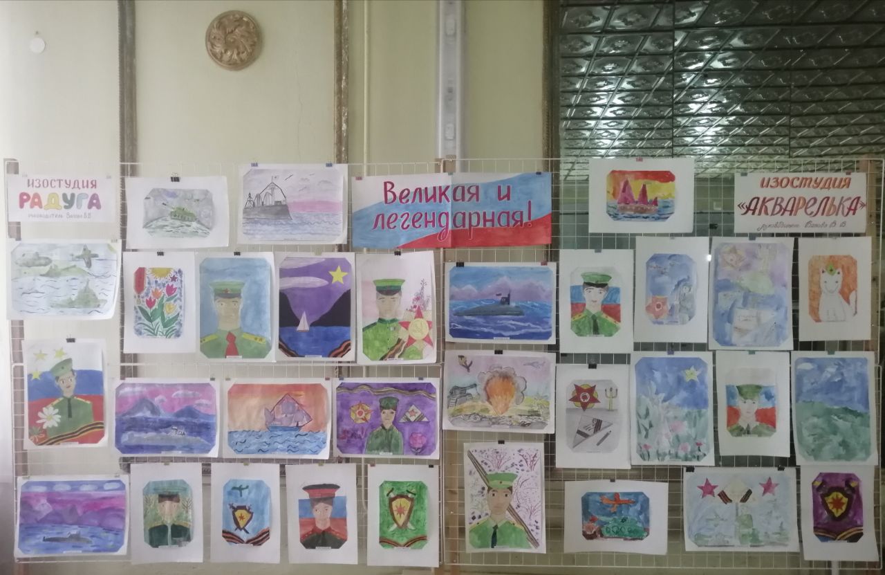 В Центре творчества открылась выставка работ "Великая и легендарная!", которую выполнили обучающиеся изостудии "Радуга" и "Акварелька" (руководитель Валова Валентина Васильевна).