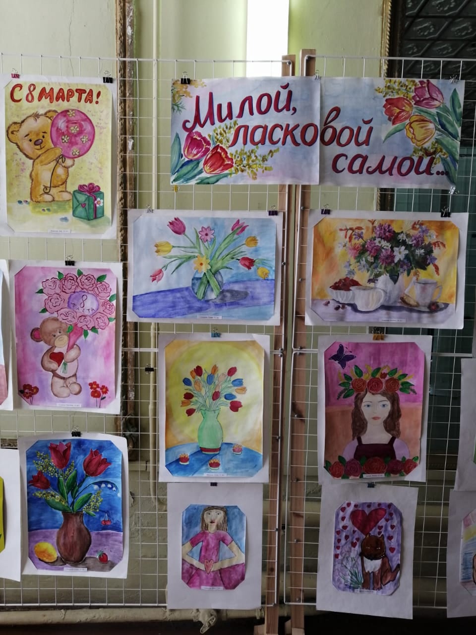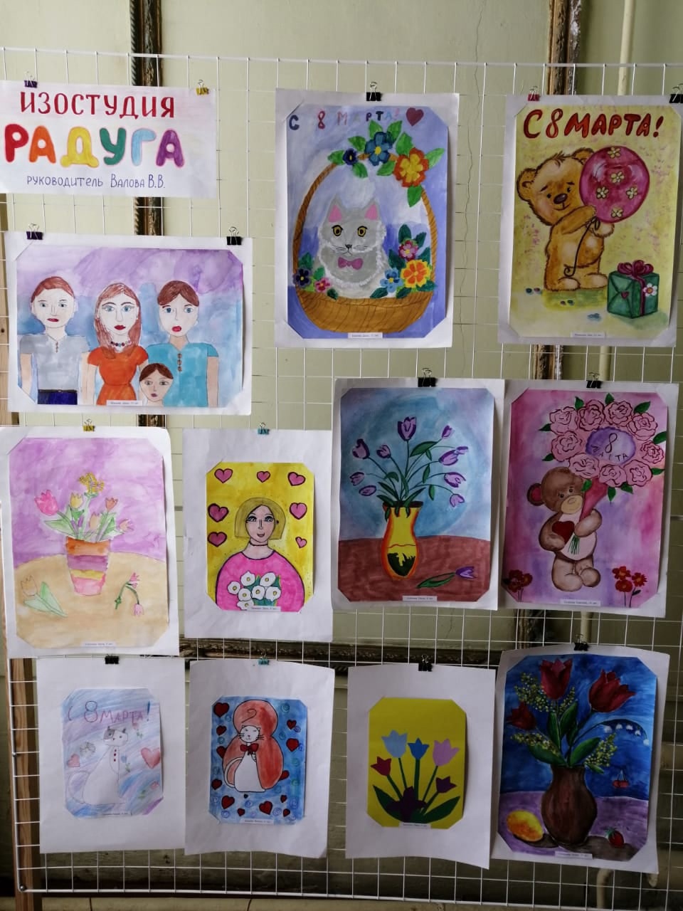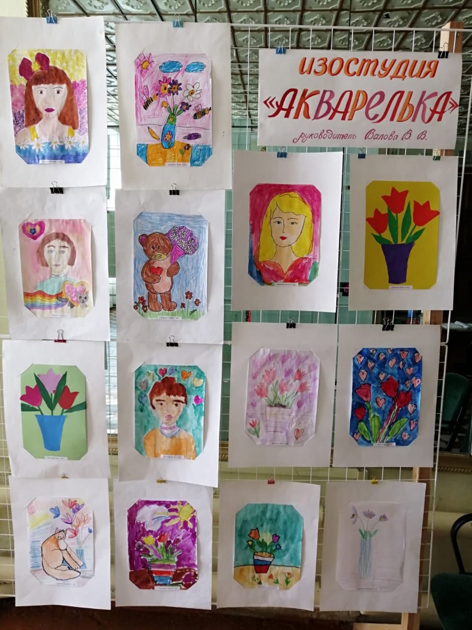В Центре творчества открылась выставка работ "Милой, ласковой самой...", которую выполнили обучающиеся изостудии "Радуга" и "Акварелька" (руководитель Валова Валентина Васильевна). На выставке представлены 30 работ.