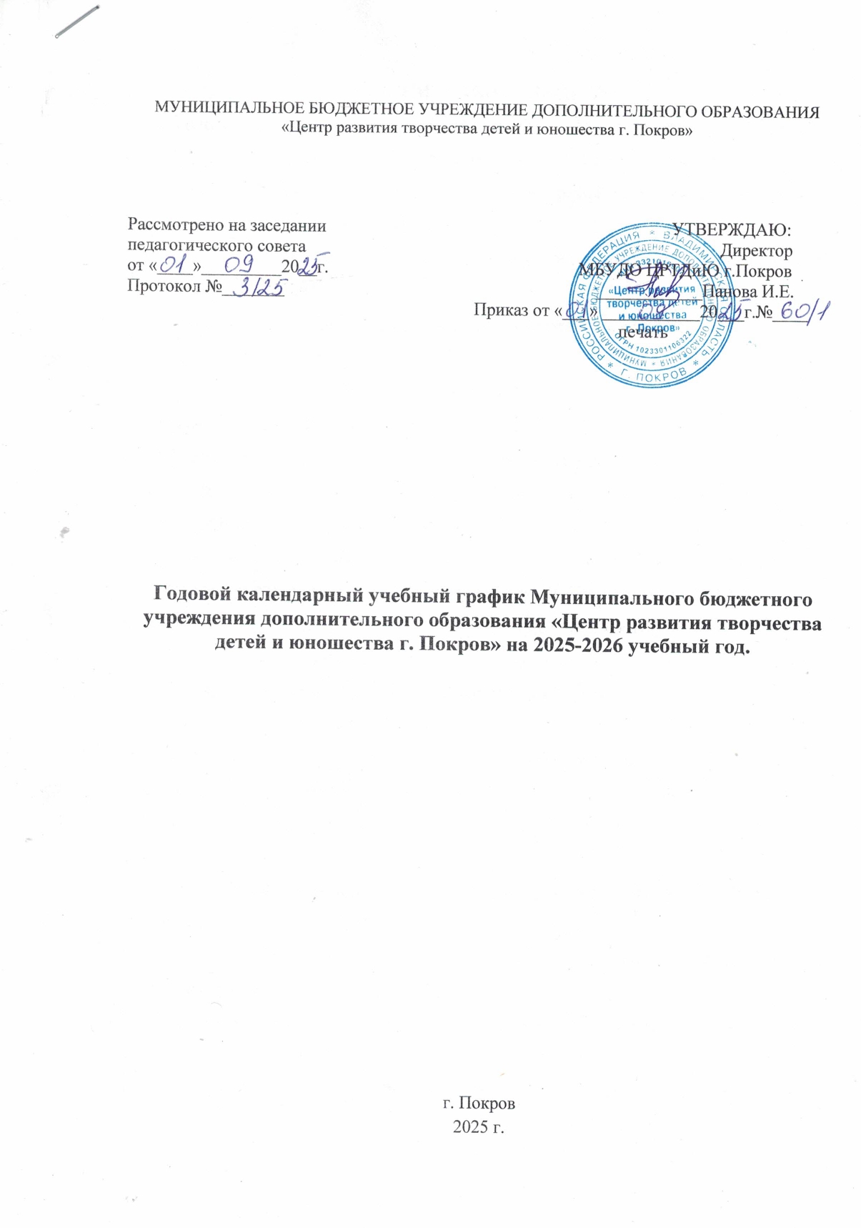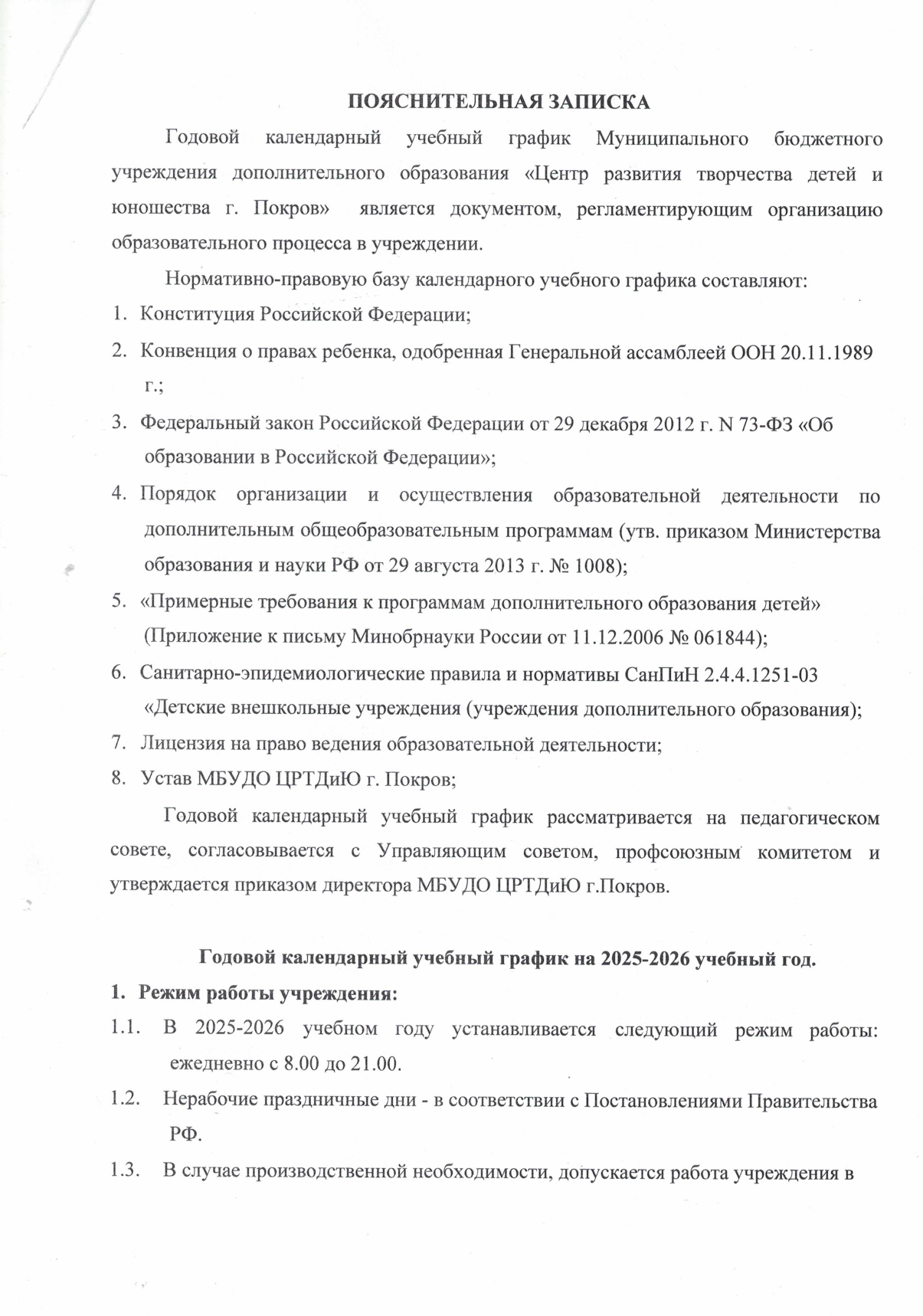 ГОДОВОЙ КАЛЕНДАРНО - УЧЕБНЫЙ ГРАФИК 2025 - 2026 УЧЕБНЫЙ ГОД