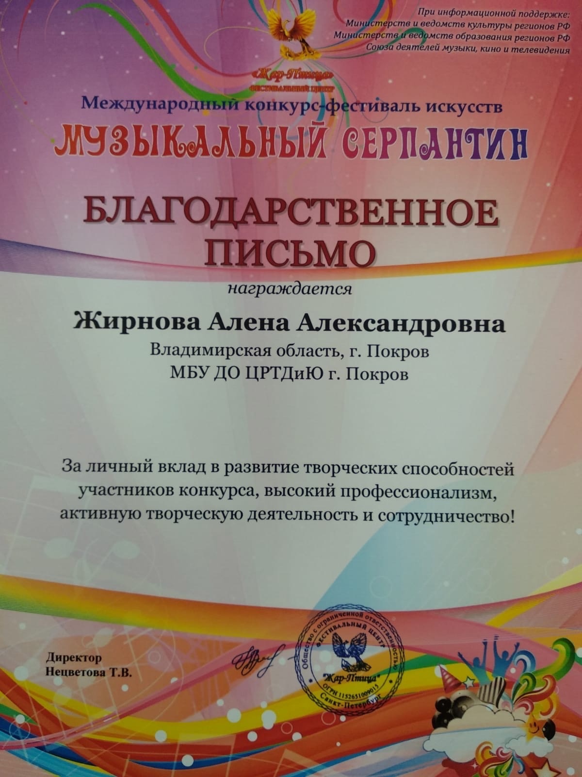 Поздравляем артистку с прекрасным результатом!