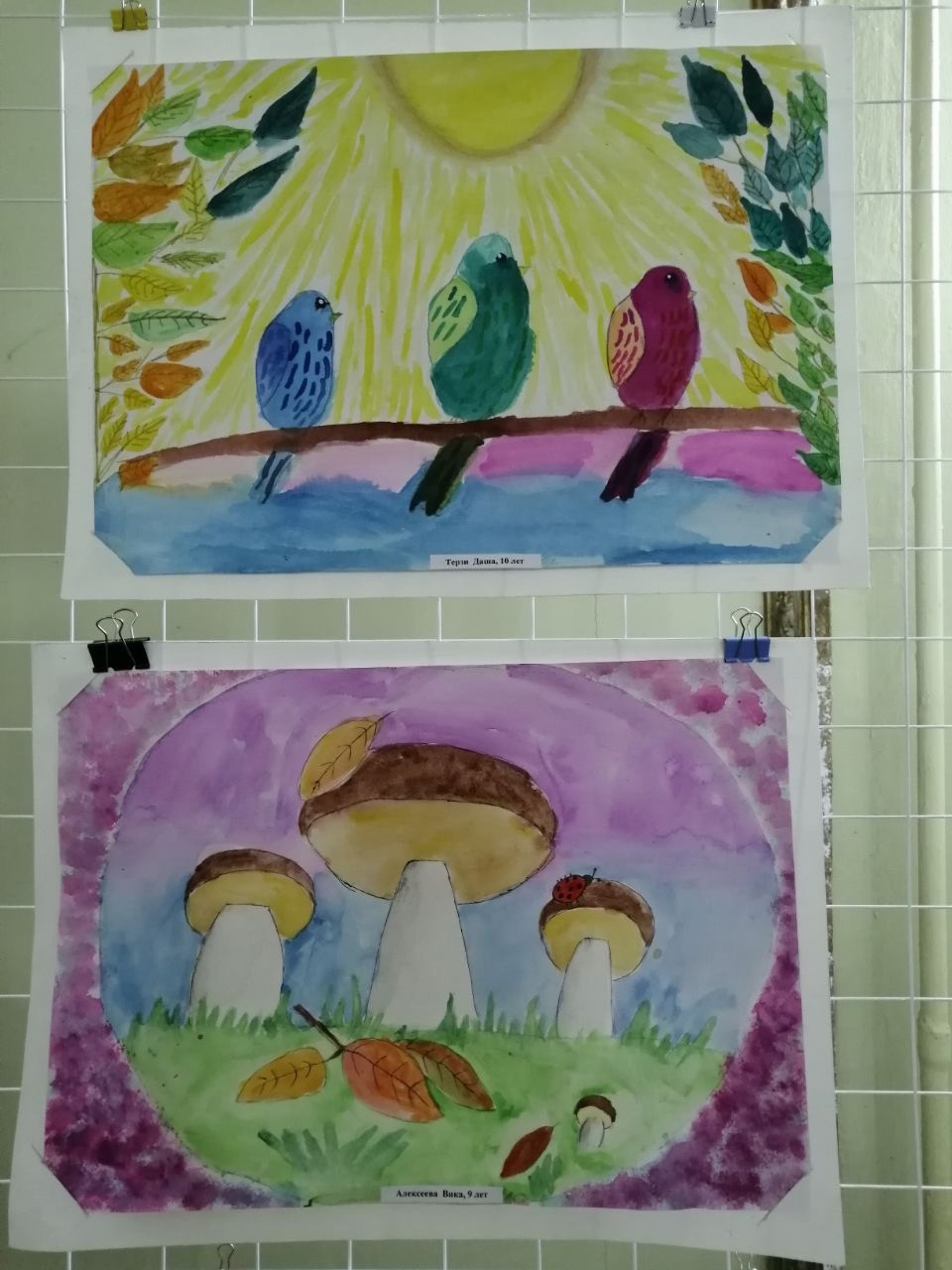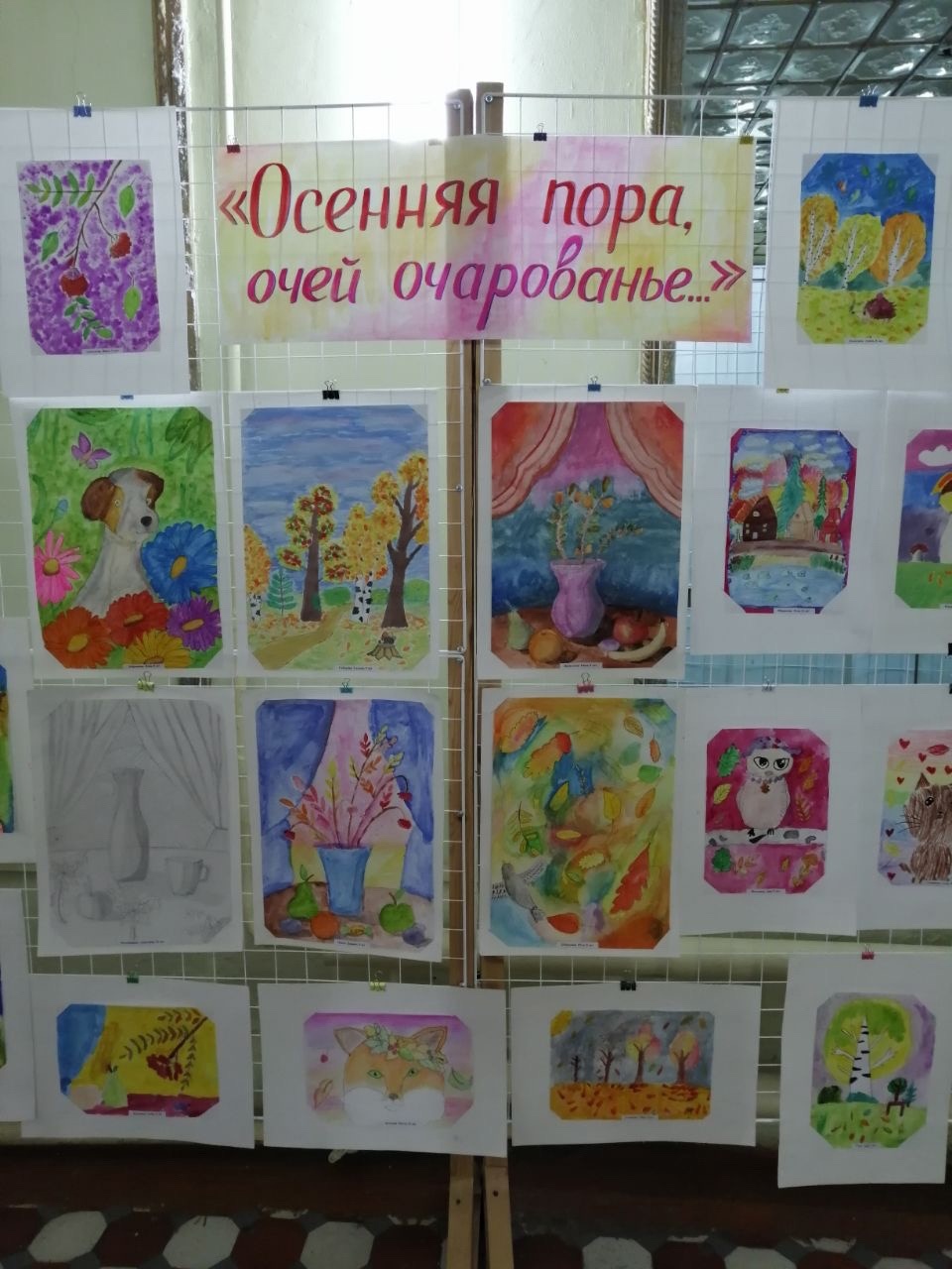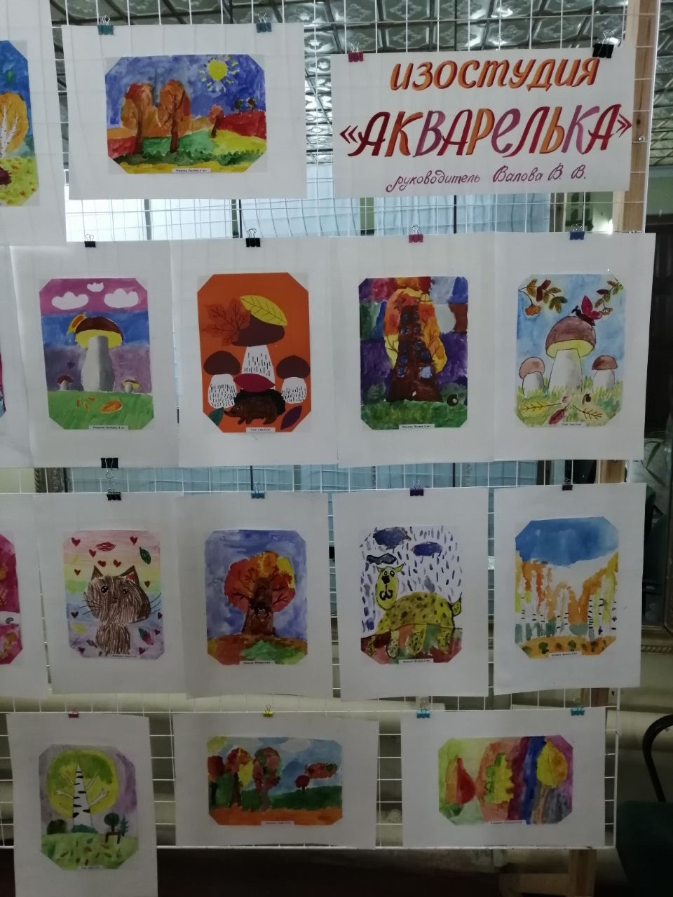 18 октября в Центре творчества открылась выставка работ "Осенняя пора, очей очарованье...", которую выполнили обучающиеся изостудии "Радуга" и "Акварелька" (руководитель Валова Валентина Васильевна) На выставке представлены 34 работы. Это осенние пейзажи и натюрморты, букеты осенних цветов, животные и птицы. Работы выполнены различными техниками: акварелью, гуашью, цветными карандашами и ручками. Особенно интересные рисунки получились у Добрыниной Юли, Первухиной Вики, Алексеевой Вики, Бухарева Даниила, Шариповой Розы и Бычковой Насти.