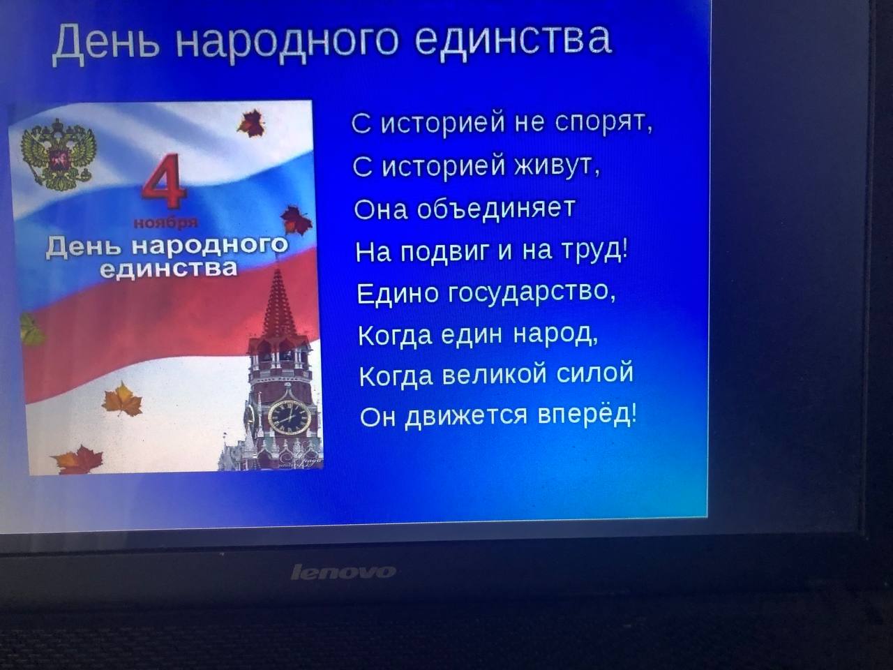 В студии «Бисероплетение», педагог Наталья Васильевна Каранфил, прошла презентация «Мы силой едины сильны», приуроченная к празднику «День народного единства». Дети внимательно слушали и четко отвечали на вопросы. Ещё раз повторили,что этот праздник призывает к единству России,что надо защищать свою Родину.