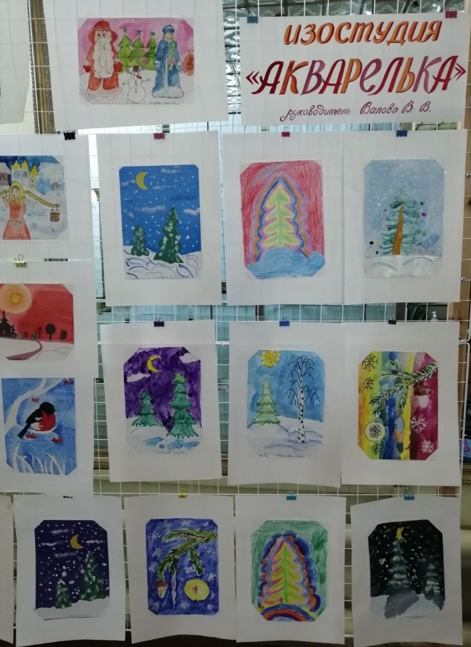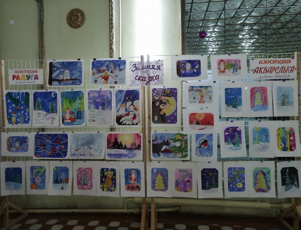В Центре творчества открылась выставка работ "Зимняя сказка", которую выполнили обучающиеся изостудии "Радуга" и "Акварелька" (руководитель Валова Валентина Васильевна). На выставке представлены 36 работ.