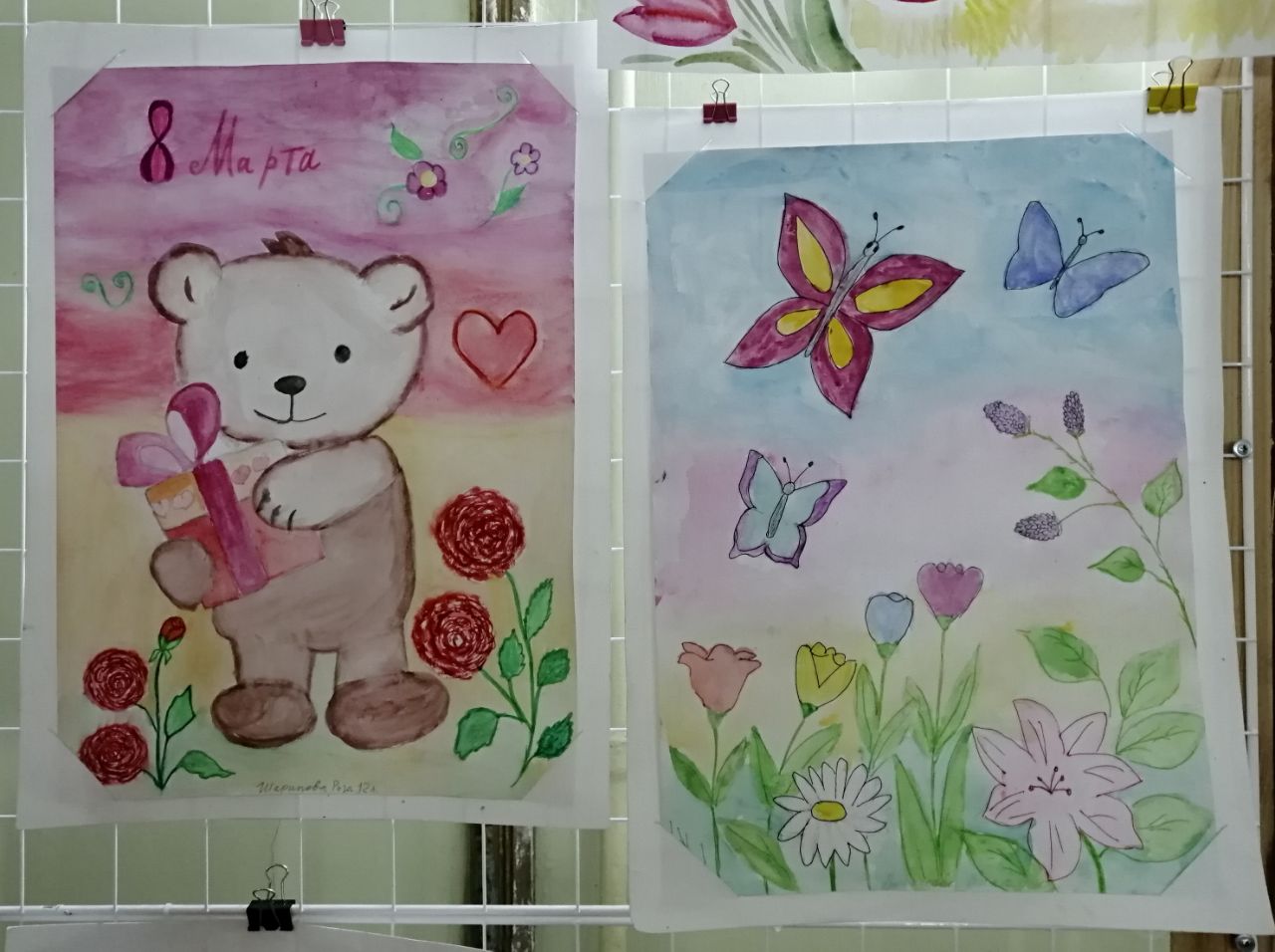 В своих рисунках дети изобразили весенние цветы, тюльпаны, мимозу, любимых животных и других персонажей с цветами и подарками. Рябята очень старались порадовать своих мам и бабушек.