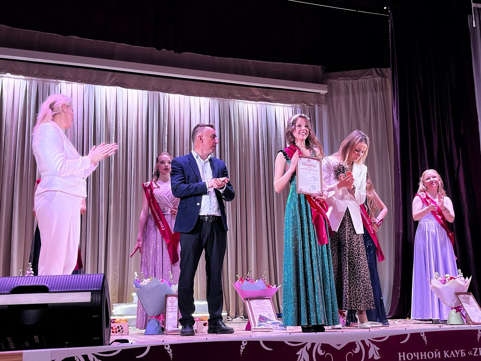 «Покровчаночка» для города Покров этот конкурс - яркий, изящный, элегантный - стал своеобразной визитной карточкой. Это настоящий праздник молодости, красоты и стиля. Ежегодно, в апреле, стало доброй традицией выбирать красавицу, которая весь следующий год будет носить титул «Покровчаночки». По словам организаторов, девушек, мечтающих стать финалистками конкурса, было много. Но отборочный тур прошли только 5 красоток. Ими стали: Валерия Ефремова, Камилла Шайдулова, Инна Гречанюк, Татьяна Чардымова, Наталья Смирнова. По условиям конкурса в шоу - программе могут принять участие жительницы муниципального образования город Покров в возрасте от 14 до 17 лет. Помимо очаровательной внешности, участницы «Покровчаночки» должны были обладать харизмой, обаянием и желанием делиться со зрителями шоу и членами жюри позитивными эмоциями. Так оно и получилось! Овации и восторг! А в состав жюри в этом году вошли: председатель жюри глава администрации Петушинского района Александр Курбатов, глава Петушинского района, многодетная мама Елена Володина, глава Администрации Города Покров Денис Рогов, директор ЦРТДиЮ города Покров Ирина Панова, директор профессиональной фотостудии «L’studio» Эльвира Кондрашова, профессиональный хореограф Максим Кислов, художественный руководитель МБУ «Вольгинского культурно-досугового центра» Диана Пантус, дирижёр народного ансамбля «Вдохновение» Михаил Новичков. И вот настало время для самого главного: титул «Покровчаночки - 2024» получает Инна Гречанюк! Право короновать голову победительницы было предоставлено Александру Курбатову.
