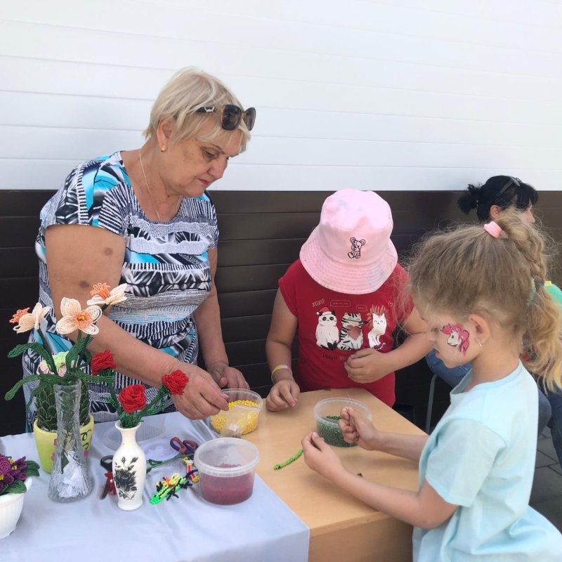 Валентина Васильевна Валова и Наталья Васильевна Каранфил представили на празднике выставку работ наших ребят и мастер-класс по плетению из бисера.
