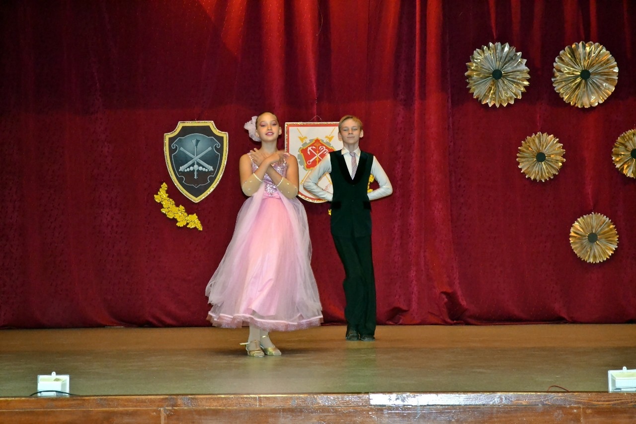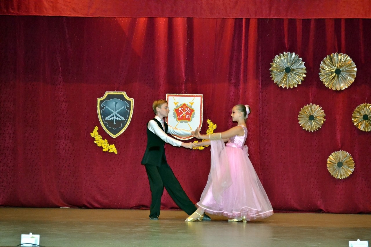 В этот день на сцене Дома культуры военного городка звучали слова поздравления , песни ,стихи . А наши юные танцоры исполнили две танцевальные композиции: Вальс и