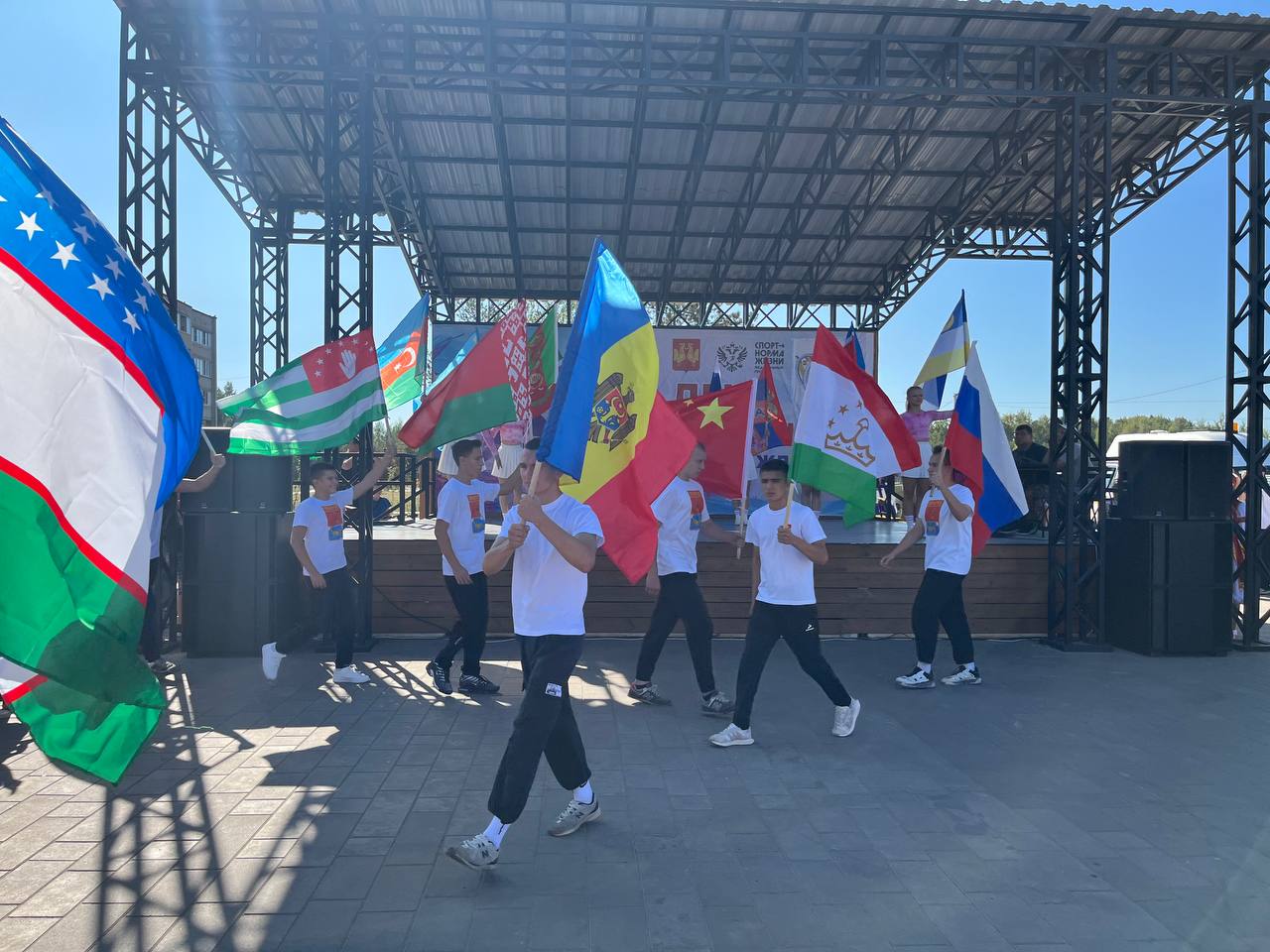 Артисты и представители различных народностей и диаспор, проживающих на территории Владимирской области и Петушинского района, творческие и спортивные коллективы, а также участники забега слились в единый праздничный поток этого праздника. После общей разминки участники забега стартовали. Праздничное мероприятие было украшено яркими и зажигательными творческими номерами. Это выступление секции бокс и карате нашего центра творчества, танцевальных коллективов, наших друзей из города Шатура "Черусти Дэнс", рядом с павильонами было организовано шахматное соревнование (ответственный педагог дополнительного образования Мартиросян К.Р. - секция "Неисчерпаемые шахматы"). Ведущей мероприятия стала заместитель директора по воспитательной работе, педагог дополнительного образования Анастасия Алексеевна Тихонова.