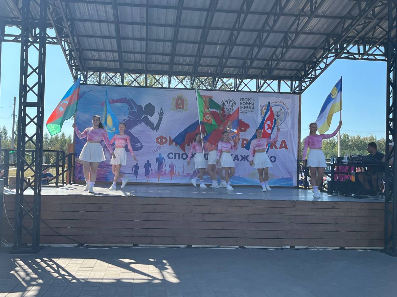 Мероприятие открылось торжественным шествием барабанщиц Центра развития творчества с приветствием всех участников сегодняшнего события и флагами, символизирующими дружбу народов.