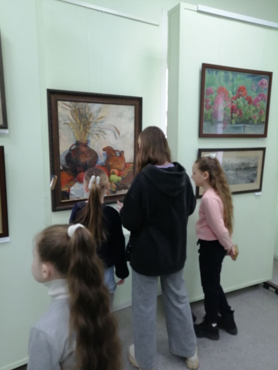 Ребятам очень понравились красочные натюрморты и пейзажи, особенно, летние, зимние и осенние деревенские пейзажи.