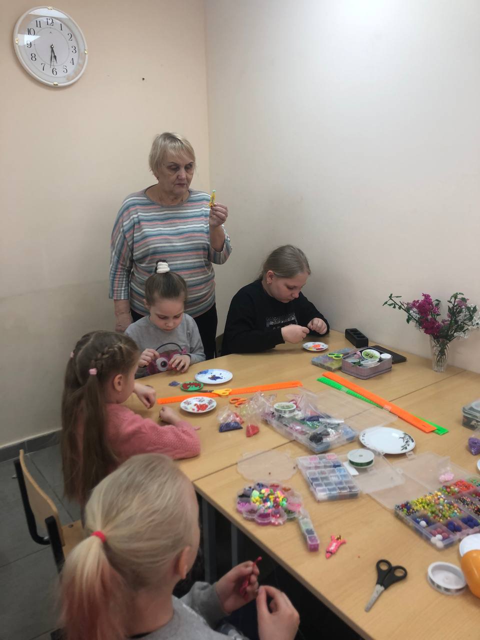В студии «Бисероплетение»(руководитель Каранфил Наталья Васильевна) прошло открытое занятие для родителей «Космическая ракета». Перед началом занятия Наталья Васильевна рассказала детям о космосе интересные факты, которые расширили их кругозор и эрудицию.