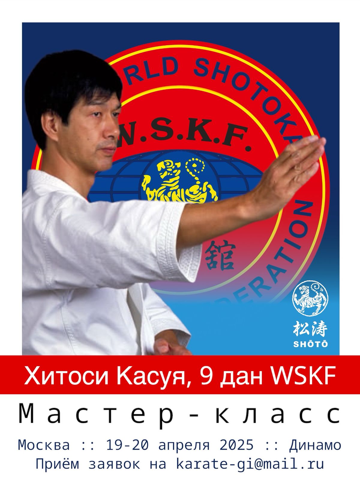 Сегодня Хитоши Касуя один из наиболее авторитетных мастеров в мире каратэ. С 19-20 апреля в городе Москва прошел двухдневный семинар под руководством шеф инструктора Хитоши Касуя,9 дан WSKF. В семинаре, вместе с тренером Александром Викторовичем Неровновым, приняли участие и наши спортсмены .