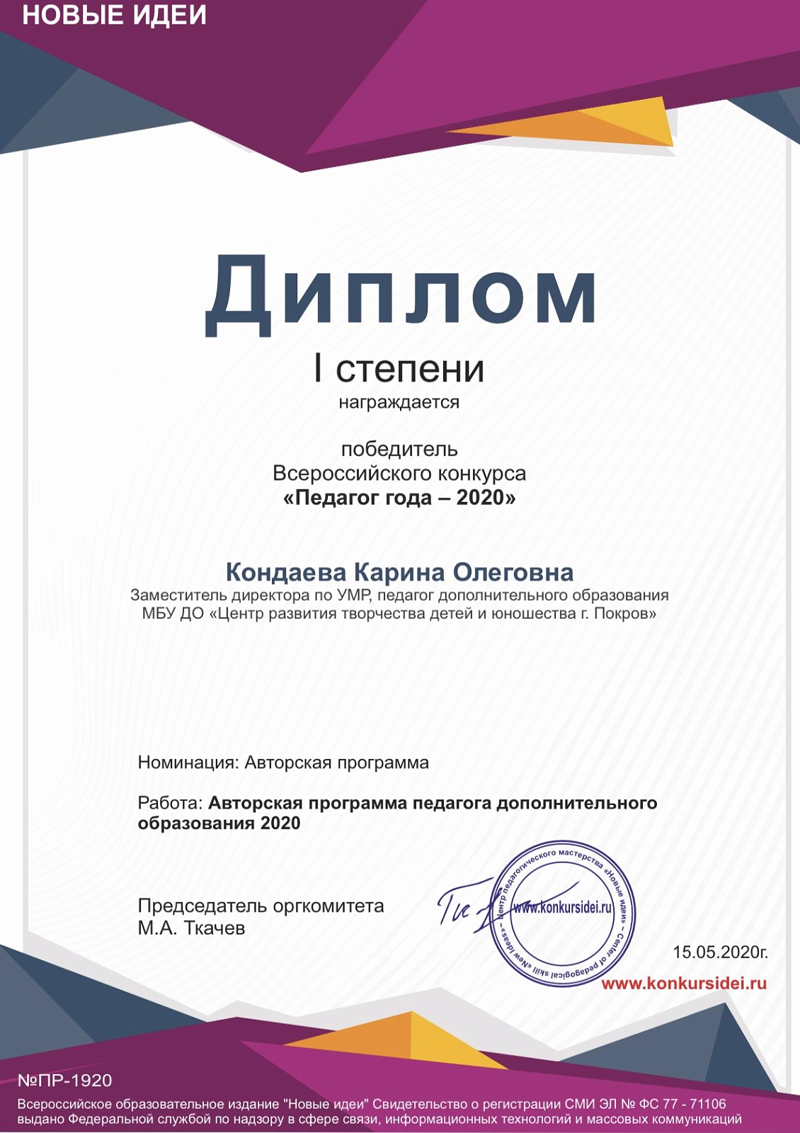 Поздравляем нашего заместителя директора по УМР Кондаеву Карину Олеговну и по совместительству нашего педагога по иностранному языку с победой во Всероссийском конкурсе "Педагог года 2020" в номинации авторская программа! Желаем дальнейших успехов в науке и работе!#мбудоцентрразвитиятворчествадетейиюношествапокров