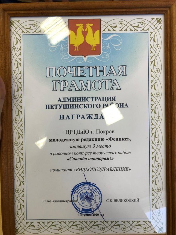 Урррааа!!! Победа!!!! Наша молодёжная редакция "Феникс" заняла 3 место в районном конкурсе "Спасибо докторам". А так же в номинации "Видеообращение" был отмечен наш маленький обучающийся Иван Смирнов,который прочитал трогательное стихотворение, в благодарность врачам. Поддержать победителей в город Петушки приехала директор Центра творчества Карина Олеговна Курятникова. Это было очень волнительно! В качестве специального приза,нашим "фениксам" были вручены подарки от телевидения Петушинского района. Это профессиональный стабилизатор видео и микрофон-петличка! Выражаем огромную благодарность Светлане Клавдиевне Анфилатовой директору ТПР за призы,которые нам помогут снимать самые красивые репортажи! #спасибодокторам