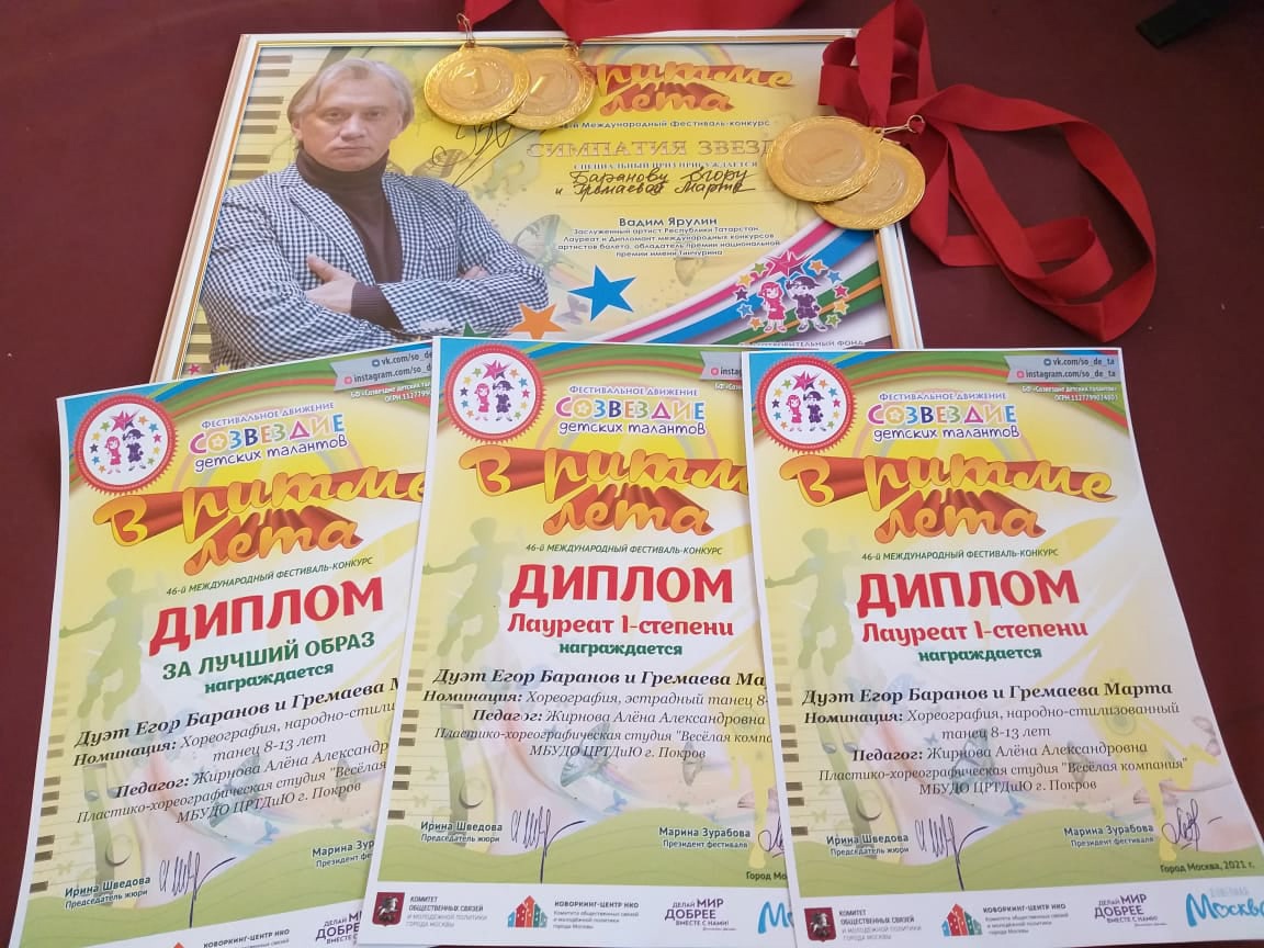 Солисты Пластико-хореографической студии "Весëлая компания" Егор Баранов и Марта Гремаева пополнили свою копилку заслуженными наградами: