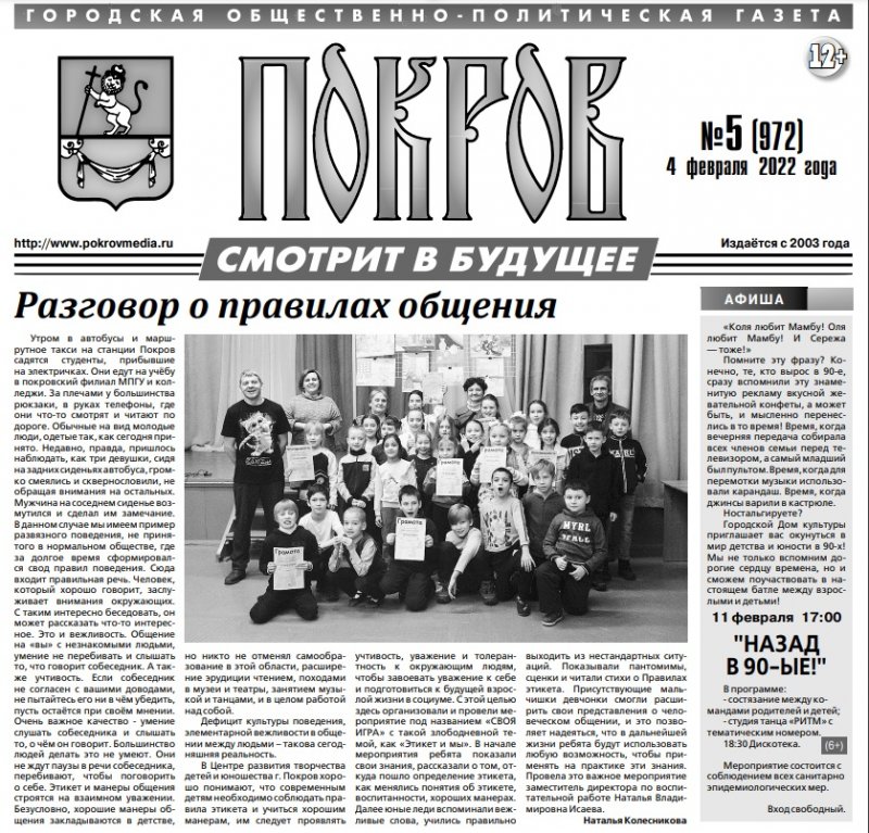 Читайте в свежем номере газеты "Покров смотрит в будущее" материал о нашем мероприятии!