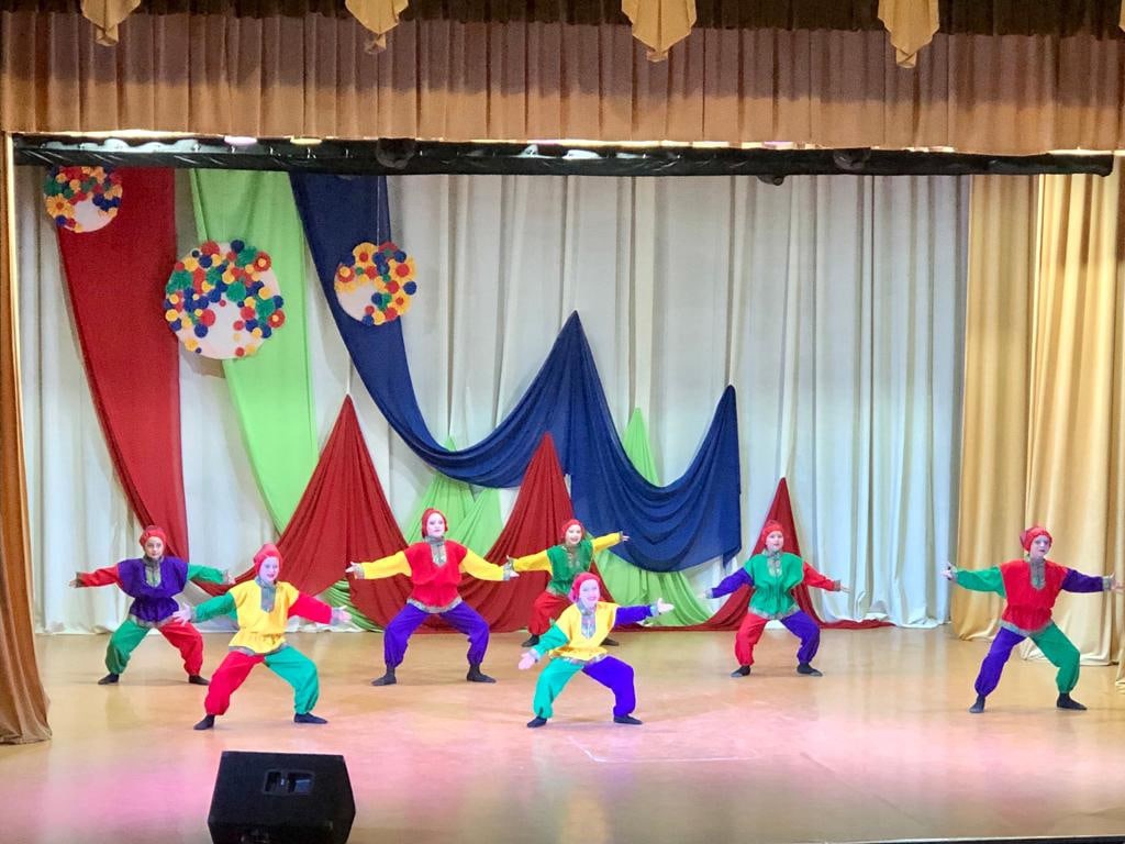 1) 23.04 Районный конкурс " Танцевальные ритмы " . Дети четвертого года обучения исполнили два танца в номинации " Стилизованный танец ": " Скоморохи " и " Сплетницы " . Яркие костюмы и задорное исполнение были встречены зрителями бурными аплодисментами .