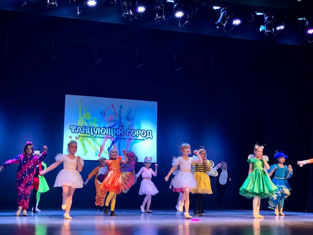 2) 30.04 Межрегиональный хореографический конкурс " Танцующий город " . В данном конкурсе приняли участие дети 2 и 4 года обучения . В номинации Детский танец были исполнены танцы : " Мы с игрушкой не скучаем " и " Праздничный букет ". В номинации Эстрадный танец : " Однажды в сказочном лесу " и " Вальс ". В номинации Стилизованный танец : " Скоморохи " и " Сплетницы ". Для самых младших детей ( 5-7 лет ) состоялся ДЕБЮТ !!!! Девочки впервые участвовали в конкурсе !!!! Поэтому очень волновались ... Родители поддерживали детей и им удалось показать прекрасный результат !!!