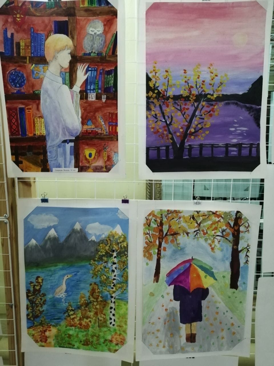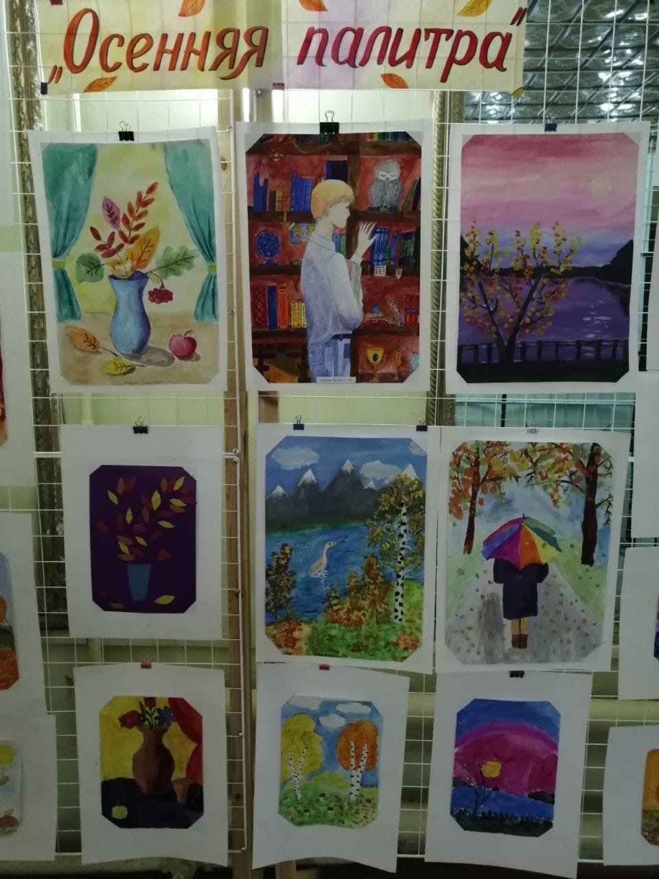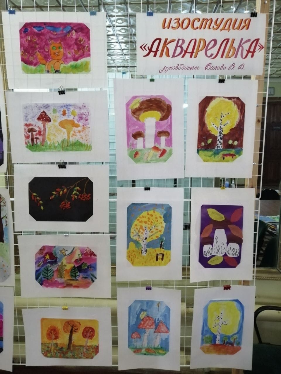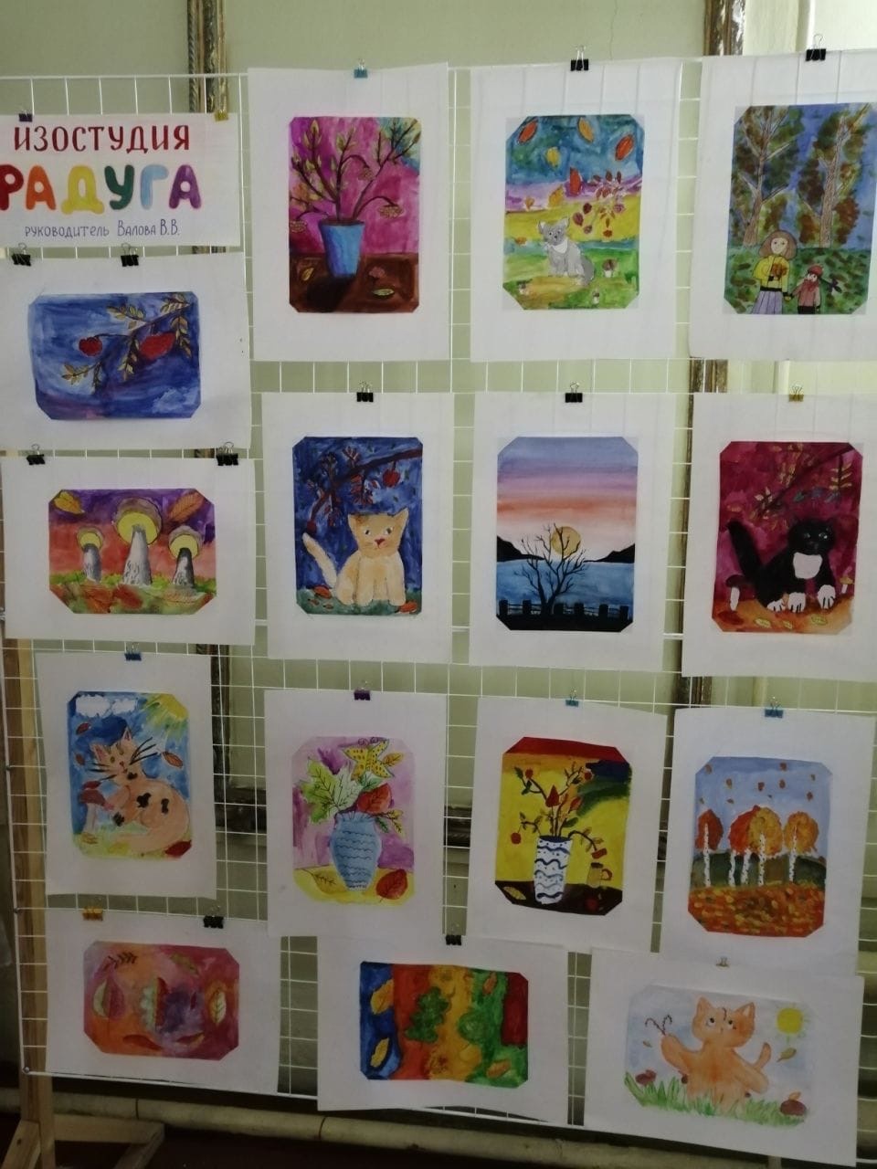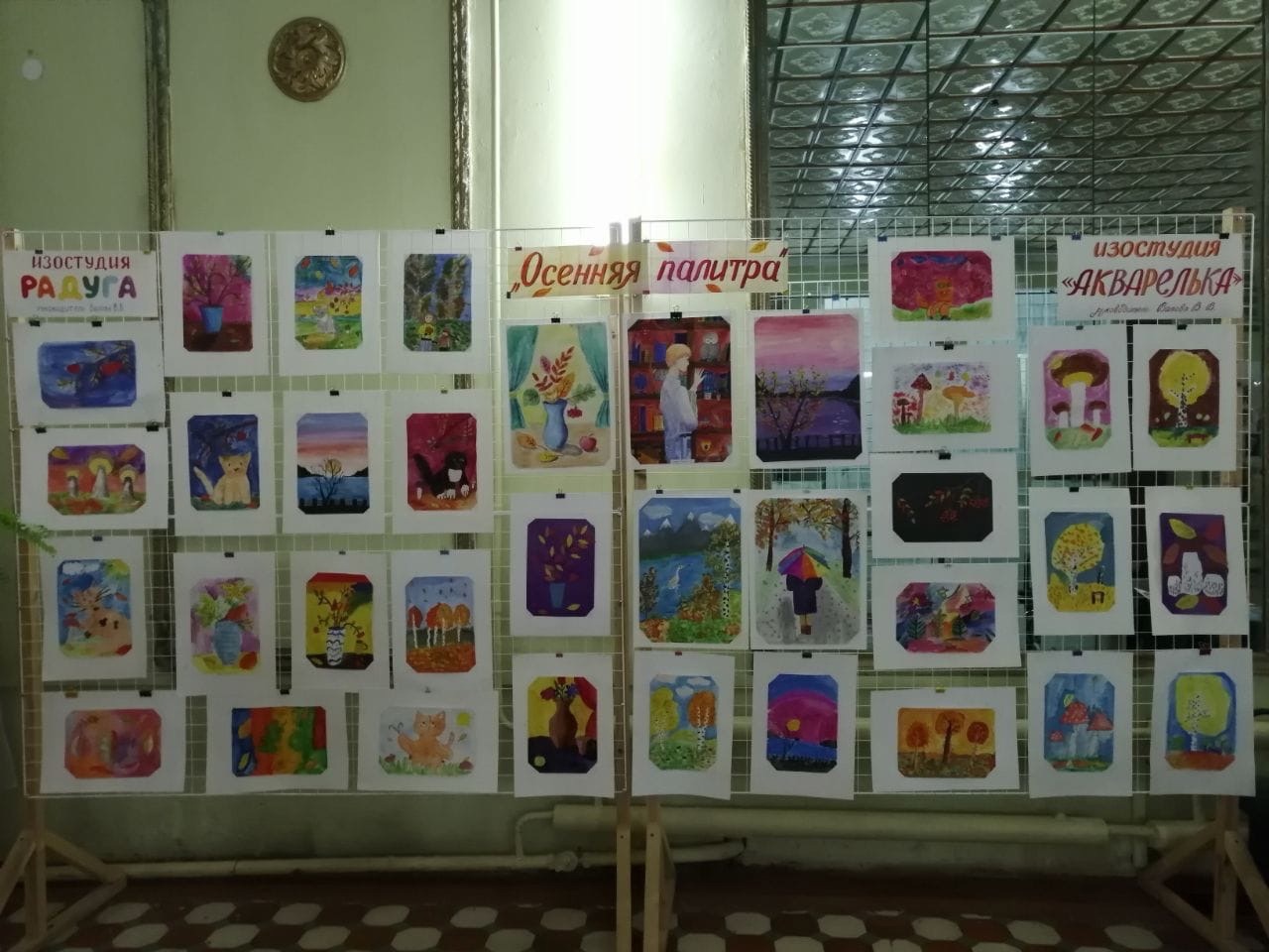 В Центре творчества открылась выставка работ "Осенняя палитра", которую выполнили обучающиеся изостудии "Радуга" и "Акварелька" (руководитель Валова Валентина Васильевна) На выставке представлены 35 работ. Это осенние пейзажи и натюрморты, букеты осенних цветов и животные. Работы выполнены различными техниками: акварелью, гуашью, цветными карандашами и ручками. Особенно интересные рисунки получились у Смирновой Наташи, Первухиной Вики, Маховой Вари, Бугровой Вари, Горюновой Кристины.