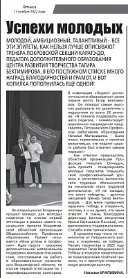 Читайте в районной газете "Вперёд" от 11 ноября 2022 года