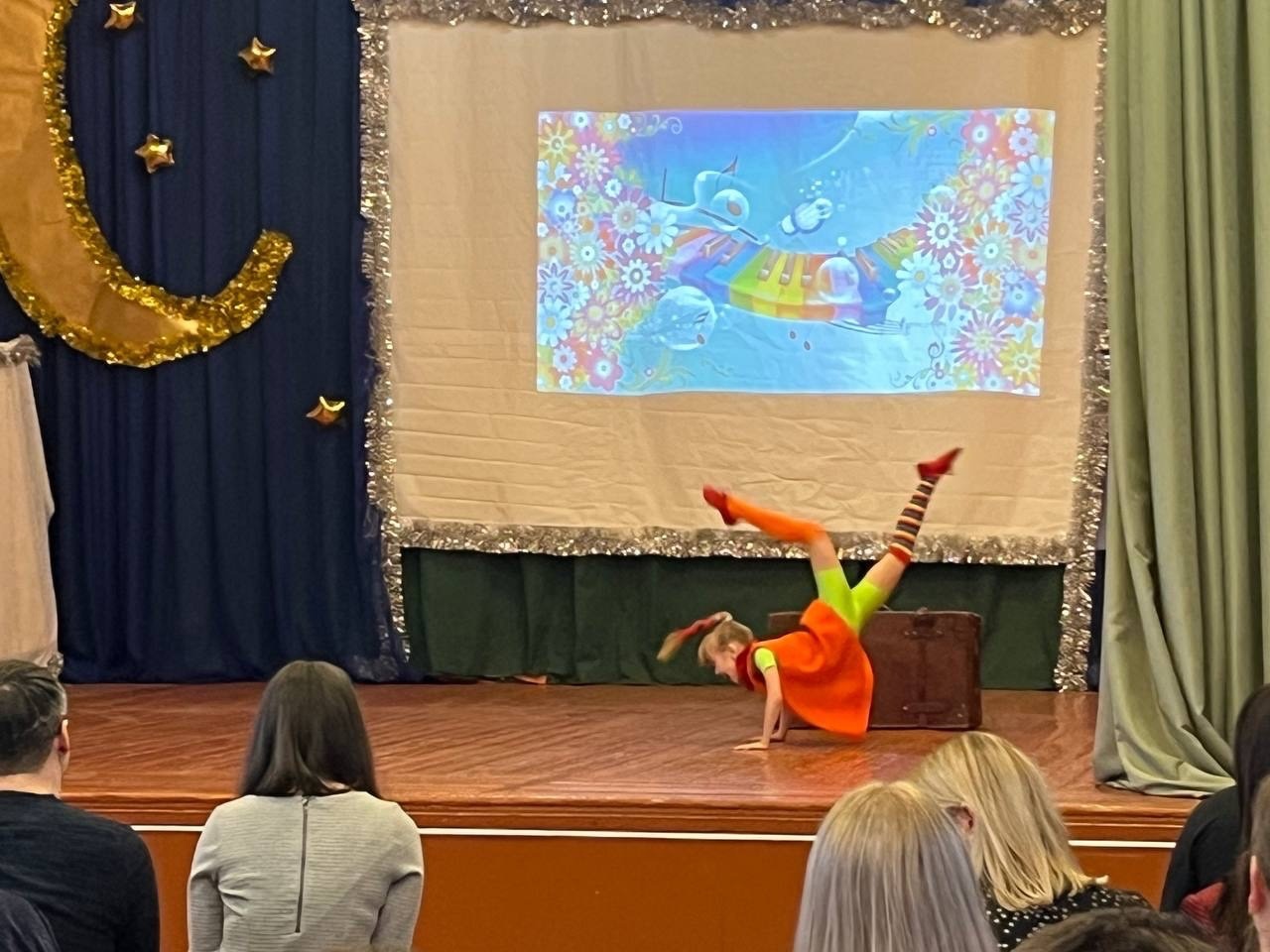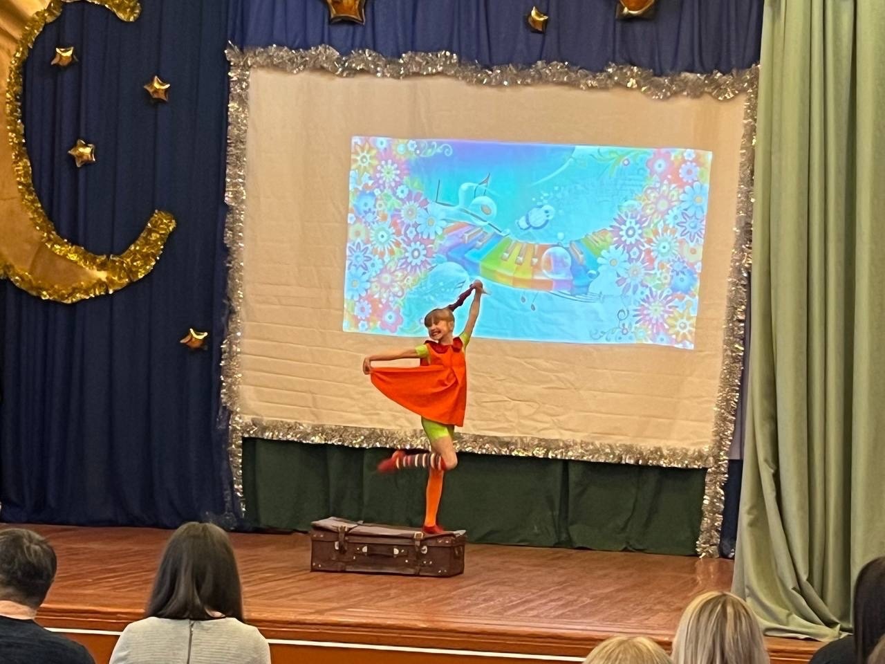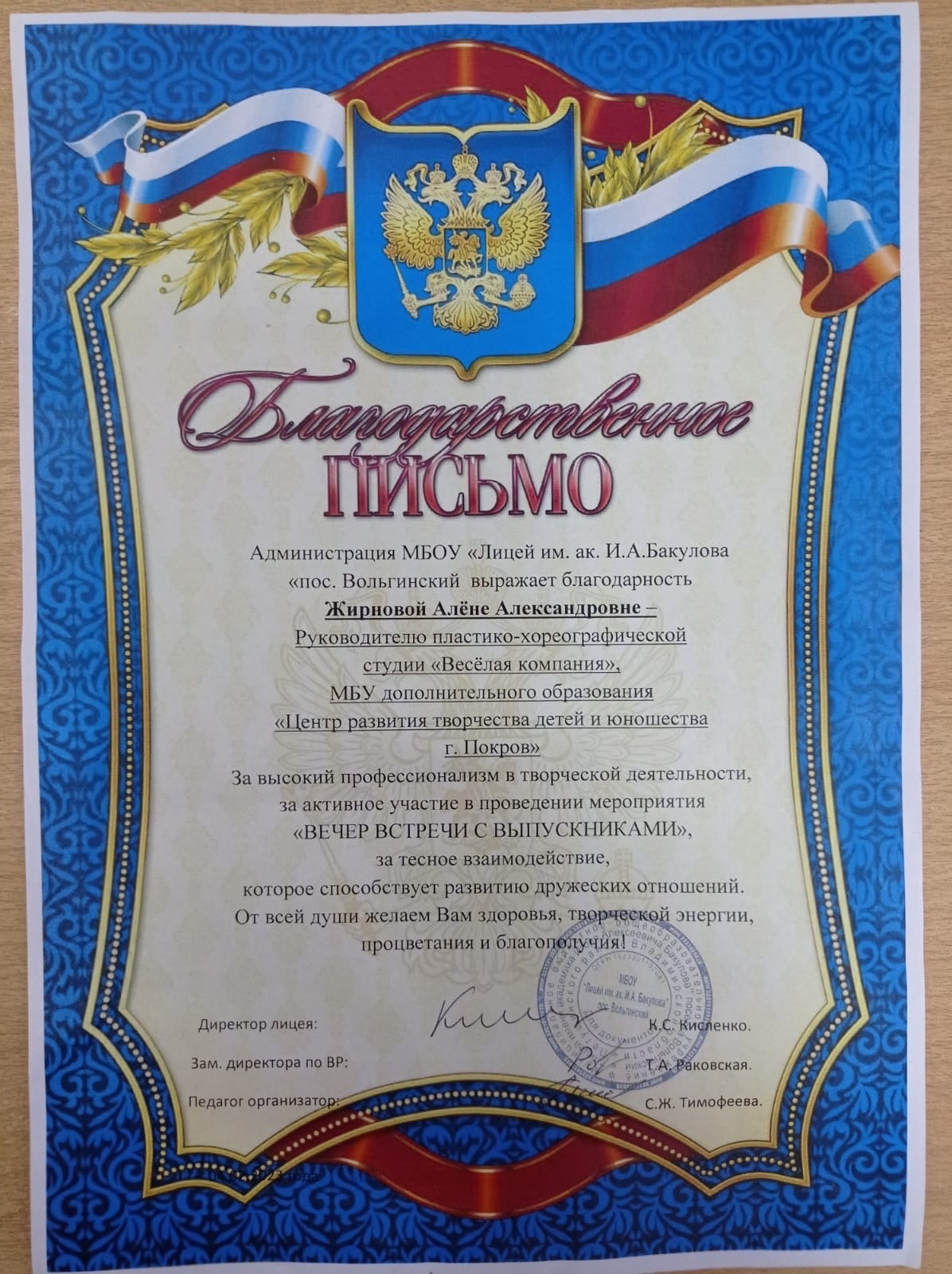 Солистка ПХ студии "Весëлая компания" - Гремаева Марта со сцены поздравила учителей и выпускников г. Покров и п. Вольгинский.