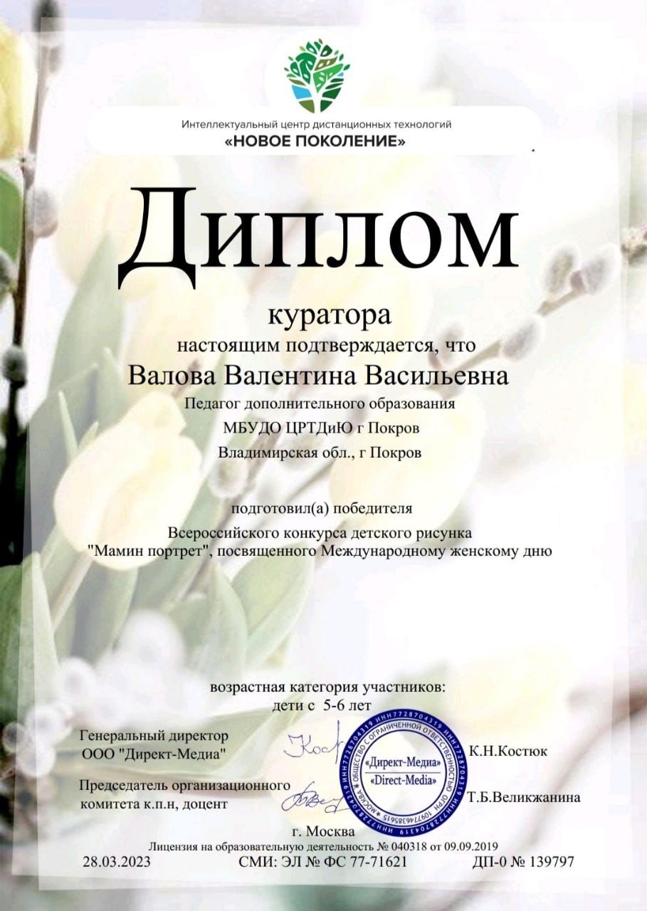 Поздравляем Белову Алису, обучающуюся изостудии "Радуга" ???? (руководитель Валова Валентина Васильевна) с победой во Всероссийском конкурсе детского рисунка "Мамин портрет", посвящённого Международному женскому дню.