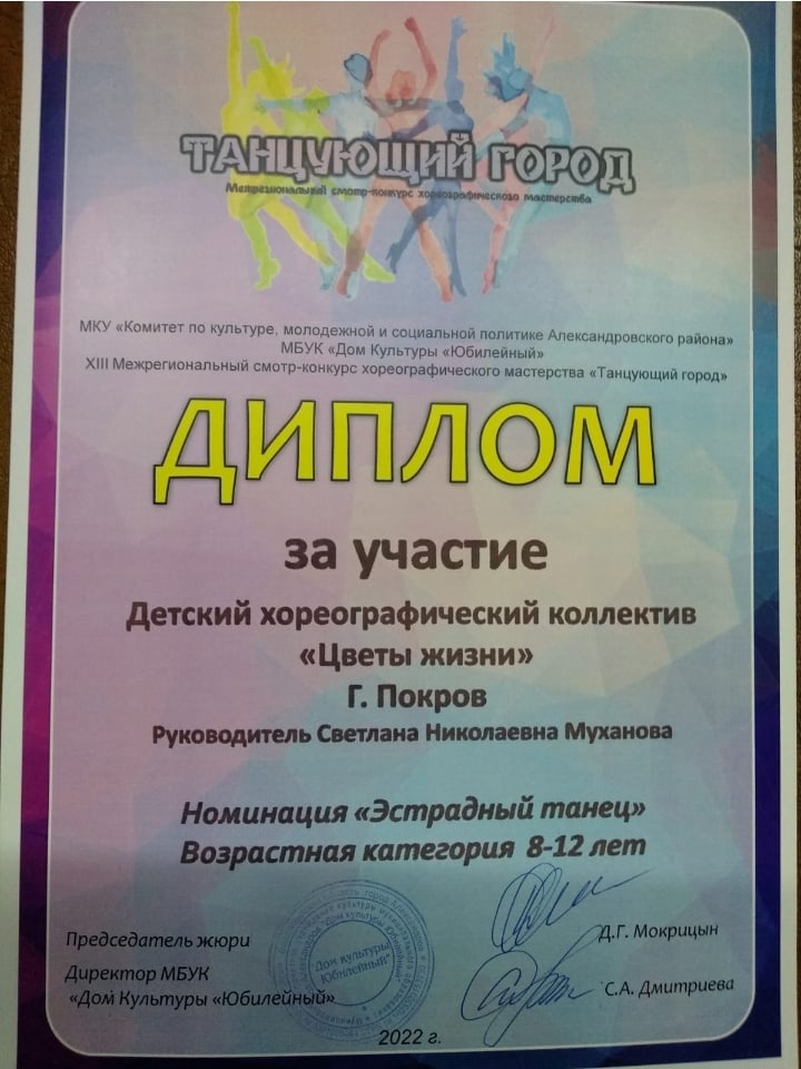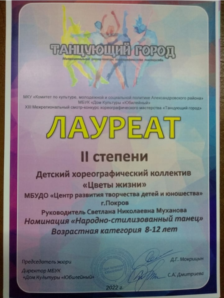 Каждая поездка коллектива "Цветы жизни" на конкурс это подведение итогов проделанной работе. А после выступления работа над ошибками и стремление добиваться новых высот !!! Подобные поездки очень нужны каждому ребенку для того что бы приобрести опыт выступления на незнакомой сценической площадке и научиться справляться с волнением перед выступлением !